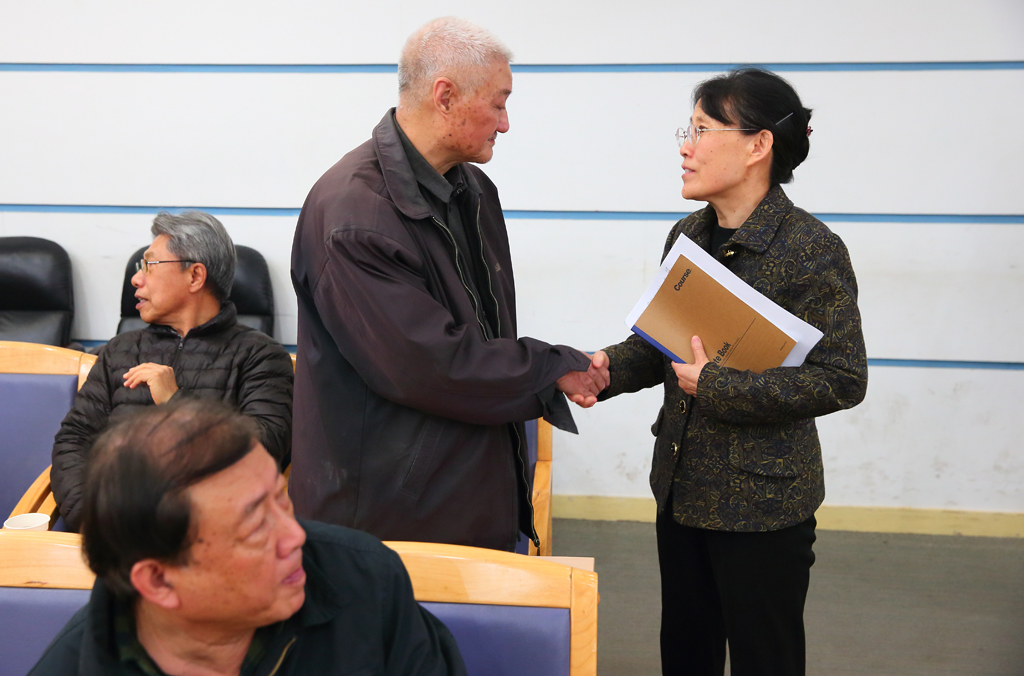 通报会上,王芳书记首先感谢全体离退休老同志对学校发展给予的关心和支持。她说,离退休老同志作为学校发展的参与者和见证人,为学校发展奉献毕生心血,她真心希望每位老同志能够关爱自己、保重身体、乐享晚年幸福生活。王芳书记从五个方面对2014年学校整体工作进行了回顾。第一,学校第十次党代会的顺利召开。王芳书记指出,在确定我校中长期发展规划后,经过10余年的发展,学校基本完成了从教学研究型向研究型大学的转变,目前处于研究型大学建设初期,我们要以“坚持建设高水平研究型大学目标不变、坚持学校办学特色不变,坚持内涵、创新、开放发展以及弘扬北化精神”“四位一体”的发展战略进一步推进学校发展。第二,学校综合改革方案的制定。2014年初学校第十次党代会上制定了今后一段时期的发展战略,随后经过反复调研和论证,出台了我校建设高水平研究型大学综合改革发展方案并上报教育部,方案包含健全现代大学制度、创新人才培养模式、改革科技创新体制等8大方面35条。第三,大学章程的修订。我校在2008年完成了大学章程的制定,随后根据教育部的整体部署,广泛征求各方面意见进行了系统修订,修订稿已在2014年底上报教育部。第四,学校整体运转情况。王芳书记向老同志代表介绍了我校2014年财政收支、科学研究、人才培养、师资队伍、教育教学和国际合作等方面工作。第五,新校区建设进展情况。王芳书记强调,经过全校上下的共同努力,新校区建设取得了巨大的进展。2014年共计拿到相关部门批件47个,其中有建设用地规划许可证、农村集体土地征地结案批复,新校区环境影响报告书的批复,新校区总体规划项目园林审批建设,第一教学楼等八个单体项目得到全面批复等等,为新校区的全面开工做出了充分的准备。