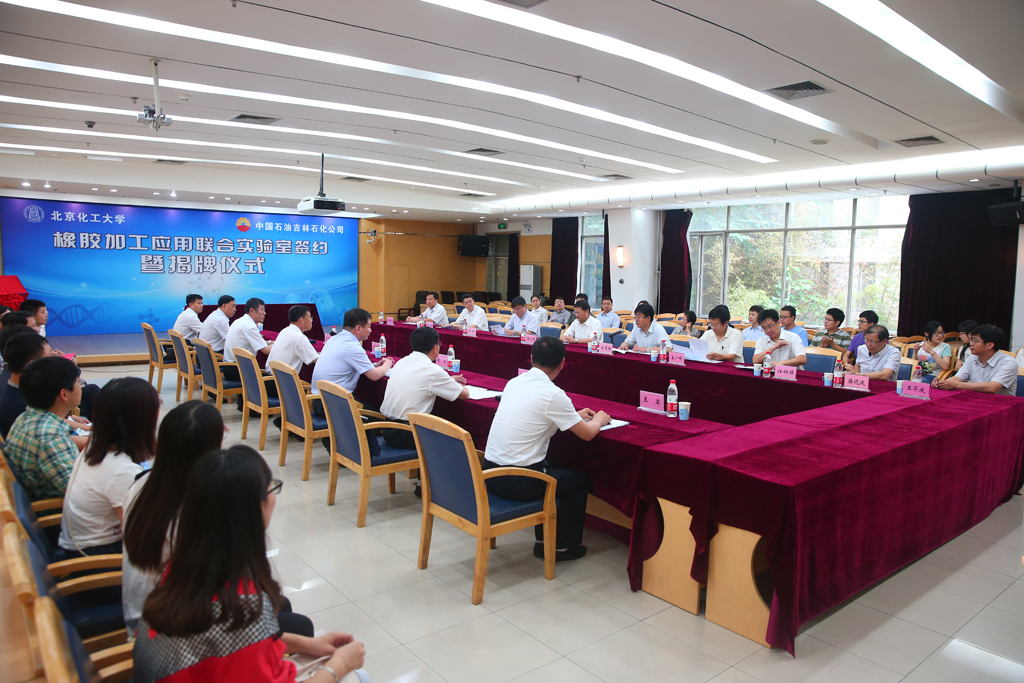 7月17日,中国石油吉林石化公司与北京化工大学共建“橡胶工程应用联合实验室”签约暨揭牌仪式在我校会议中心举行。吉林石化公司总经理孙树祯及副总经理李殿军、北京化工大学校长谭天伟、副校长王峰出席会议,校长助理宋来新主持会议。吉林石化公司科技与规划发展处、研究院、销售公司、有机合成厂等部门负责人和我校校长办公室、科研院、人事处、材料学院等部门主要负责人参会。