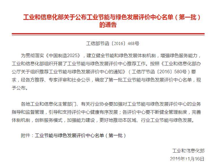 根据工信部计划,正式入选首批工业节能与绿色发展评价中心的相关单位,将以行业、省(区、市)区域为重点,按照分批建设、有序推进的原则,培育一批评价中心,面向企业开展能源审计、评估、检测,环保技术咨询、清洁生产审核,以及资源综合利用咨询等服务,协助开展工业节能和绿色发展政策、标准和规范研究,支撑工业节能与绿色发展。