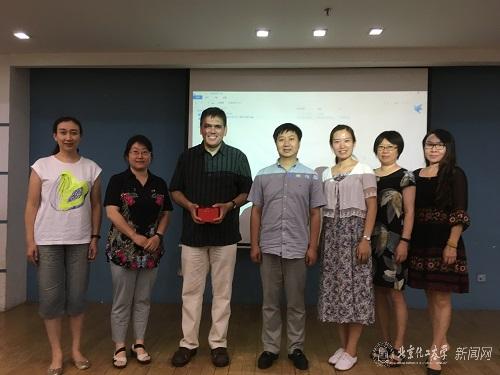 7月10日至13日,Brian Patton副教授为我校英语系2016级学生讲授一门16学时的《英美影视欣赏》课程。Patton副教授选取《诺丁山》、《土拨鼠之日》和《迷魂记》这三部以“爱、罗曼史、迷恋”为共同主题的电影,引导学生深入探讨它们的文化内涵和叙事技法。7月14日下午,Patton副教授参加了英语系举办的“‘007’与变化中的不列颠民族:历史、幻想与怀旧”学术研讨。Patton副教授讲课时声情并茂、风趣幽默而又不乏独到见解,为英语系师生带来了一次视觉、听觉、思想和情感相交融的奇妙光影之旅。