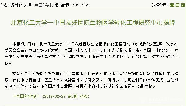 北京化工大学—中日友好医院生物医学转化工程研究中心揭牌