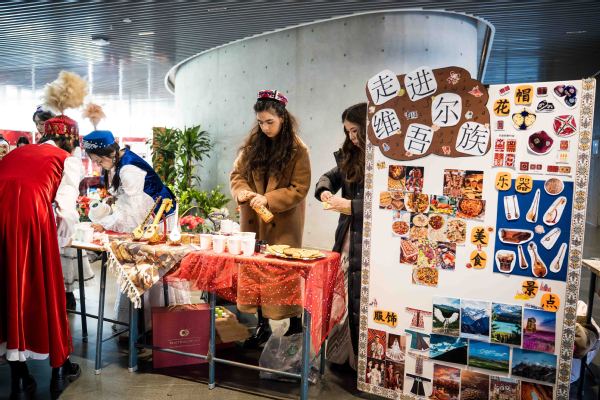 各民族风情展台前吸引了众多同学驻足流连,感受民族文化的独特魅力。现场气氛热烈非凡。