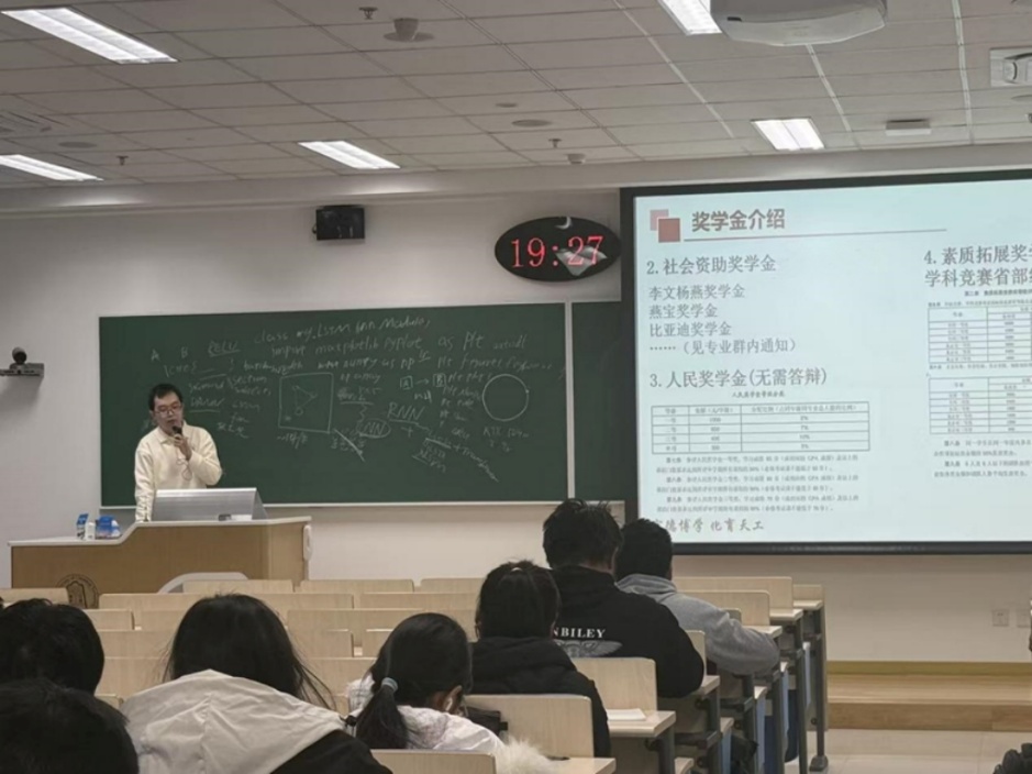 同时,为进一步深挖奖学金的育人价值,放大优秀学子的示范引领效应,学院趁热打铁组织开展国家奖学金候选人经验分享会。分享会现场气氛热烈、座无虚席,低年级学子认真聆听学长学姐的成长心得,从中汲取奋进力量。
